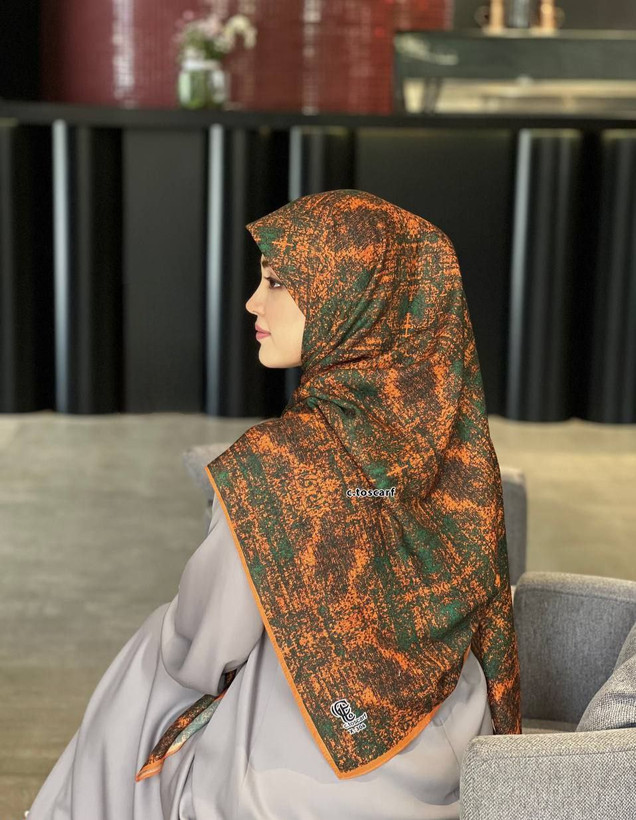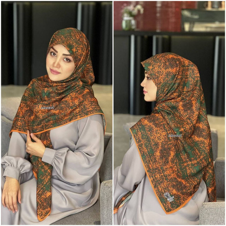 روسری طرح ساناز رنگبندی نارنجی سبز، خردلی، گلبهی
